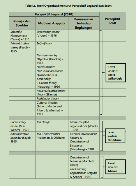 Scott dan Legaard (2010) membagi teori organisasi dalam 3 level analisis yaitu: